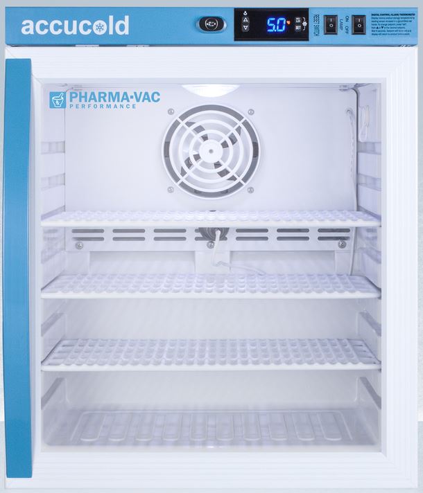 Accucold's Pharma-Vac Performance Series are upright all-refrigerators designed and purpose-built for pharmacy, medication, and vaccine applications to support meeting CDC/VFC guidelines. The ARG1PV is a 1 cu.ft. all-refrigerator with an adjustable control range from +2 to +8ºC. The microprocessor temperature controller is externally located to minimize door openings, helping to protect stored contents from ambient temperature.Read More