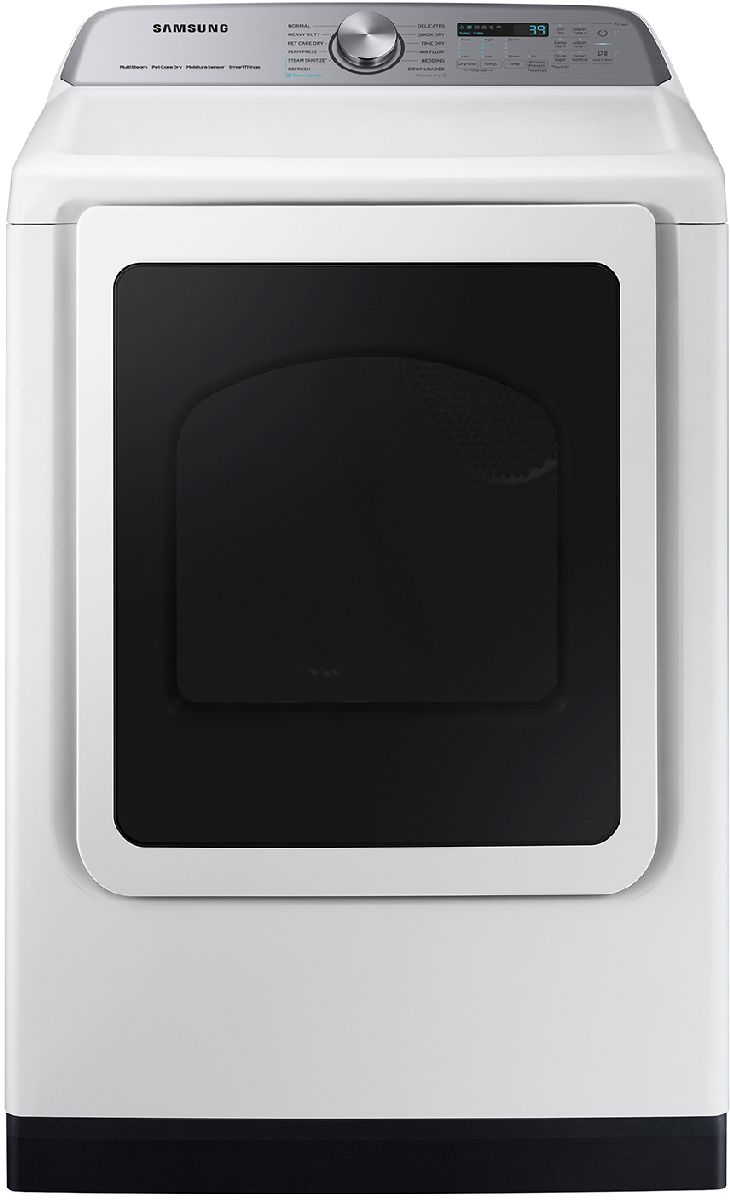Samsung's Large Capacity Electric Dryer is equipped with Steam Sanitize+, which removes 95% of pollen from fabric. MultiSteam refreshes clothing and relaxes light wrinkles. Wi-Fi connectivity, allows remote start, stop, or delay the dryer from the SmartThings App. Sensor Dry automatically optimizes the time and temperature of the drying cycle to help prevent overdrying.Read More