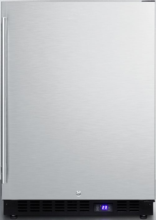 The SPFF51OSCSSIM is a 24" wide all-freezer designed for built-in or freestanding use. The cabinet and door are constructed from stainless steel for a professional look designed to hold up to the outdoor elements. The reversible door includes a factory installed lock for added security and a sleek handle to complete the look. Inside, the SPFF51OSCSSIM is designed for true convenience and low maintenance operation. The frost-free design ensures users won't have to manually defrost the 4.72 cu.ft. interior, while adjustable shelves offer flexible storage solutions. Recessed LED lighting provides an attractive, energy efficient display. A digital thermostat (located in the unit's kickplate) makes temperature management easy and intuitive. With solid construction and a striking design, the SPFF51OSCSSIM makes an ideal finish for any outdoor kitchen. For a matching refrigerator, see the SPR627OSCSS.