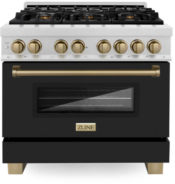 Luxury isn’t meant to be desired - it’s meant to be attainable. The ZLINE Autograph Edition 36 in. 4.6 cu. ft. Dual Fuel Range with Gas Stove and Electric Oven in Fingerprint Resistant Satin Stainless Steel with Black Matte Door and Champagne Bronze Accents (RASZ-BLM-36-CB) provides a professional culinary experience by pairing unmatched performance with personalized touches.Read More