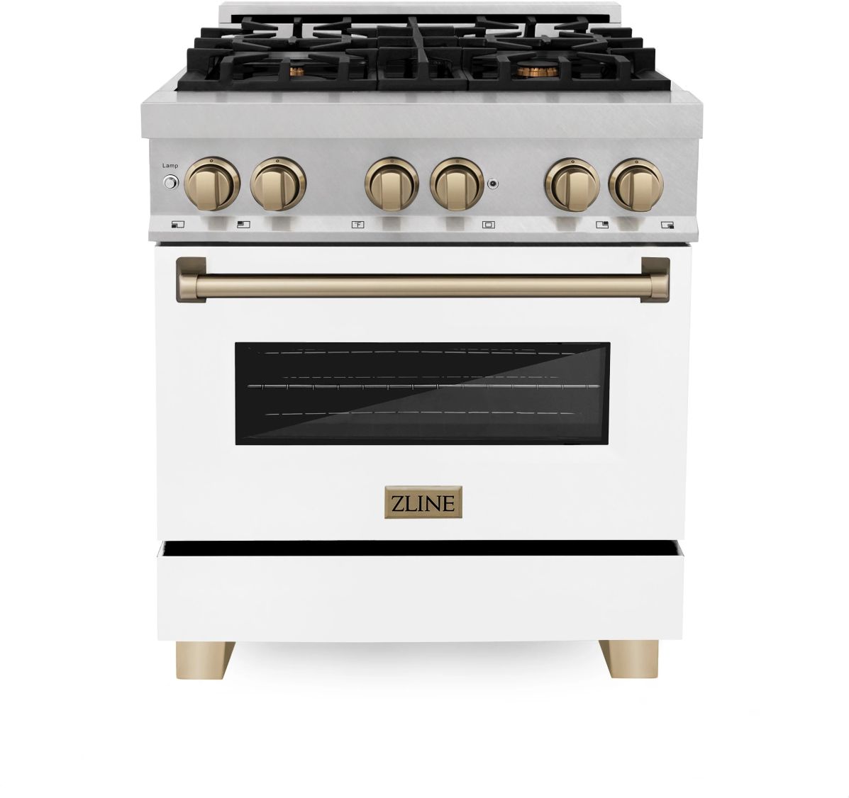 The Autograph Edition in Satin Stainless Steel provides an elevated luxury experience. This revolutionary finish resembles the classic look of stainless steel, but provides one-of-a-kind durable features such as its fingerprint resistant finish and the ability to effortlessly diminish scratches created from everyday wear and tear. Combining the professional power and functionality of a ZLINE Range with stunning champagne bronze accents and a white matte oven door, this sophisticated line of professional ranges brings a new meaning of elegance. Create an unforgettable kitchen unique to your style with champagne bronze knobs, handles, legs, and brass burners. Choose from a variety of finishes from ZLINE’s Autograph Edition, including Champagne Bronze, Matte Black and Gold. The beauty of the Autograph Edition is infinite, just like the beauty found in Lake Tahoe and the Sierra Nevada Landscapes. From our home to yours, enjoy a luxurious experience with every Autograph Edition Dual Fuel Range assembled to order in the US.
