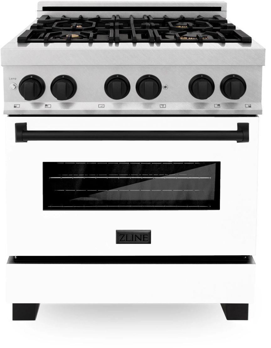 ZLINE Autograph Edition 30" Satin Stainless Steel Pro Style Dual Fuel Range with White Matte Door