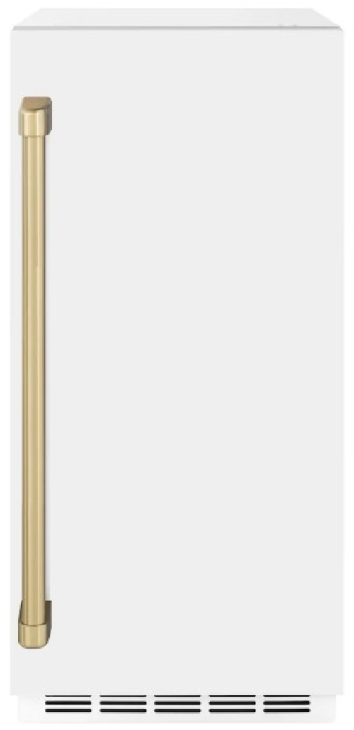 The ZLINE Autograph Edition 15 in. Touchstone Clear Cube Ice Maker with Drain Pump and White Matte Door with Polished Gold Handle (ICCDZ-WM-15-G) features cutting-edge freezing technology allowing you to craft creative cocktails, iced coffees, and more with restaurant-quality crystal clear ice cubes.Read More